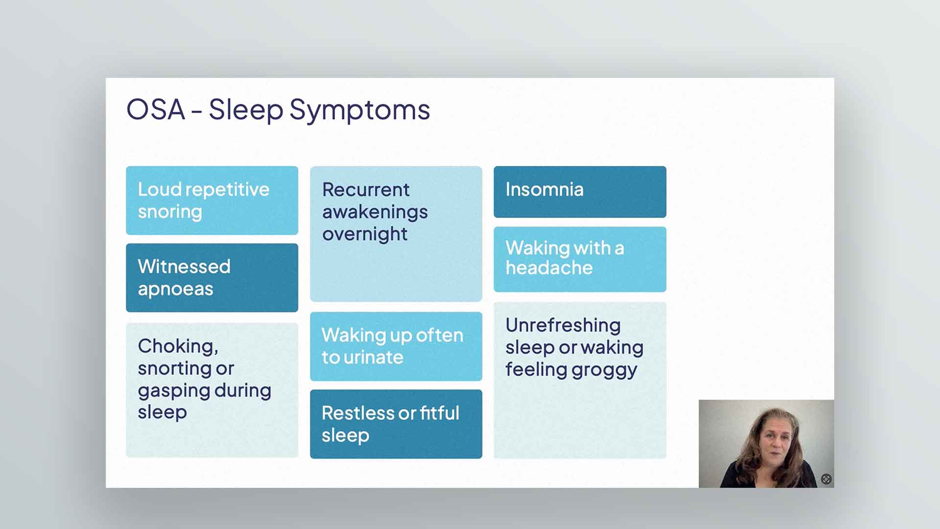 Presented by Dr Linda Schachter, Medical Director of Sleep at CardioScan, the content covers sleep physiology, diagnostic criteria, interpretation of sleep study reports and treatment options, with a particular emphasis on Obstructive Sleep Apnoea (OSA).